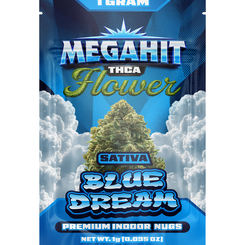 MEGAHIT Blue Dream THCA Flower delivers classic sativa character, vibrant flavor, and premium indoor quality in a convenient 1-gram pouch designed for those who appreciate top-tier flower.